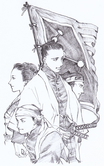 #今月描いた絵を晒そう ・美声で東山を沸かす久坂玄瑞さん ・明治政府の父と母:回天する盾と飛ぶ矛 ・里芋の茎withちょぼくれ踊る久坂さん ・御神酒徳利さんの例のトイレ問題を探る 4つ選んで見ましたがやはり今月も失礼いたしました😅