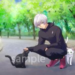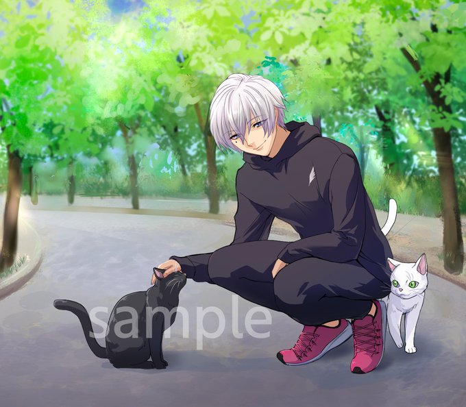 藤原瀧さまの猫と戯れるイラスト🐈🐈 スニーカーもウェアもかっこいいデザインで楽しく描かせていただきました✨ ありがとうございます! #イラスト好きな人と繋がりたい twitter.com/taki_fujiwara/…