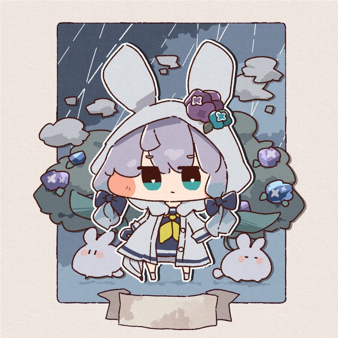今すごく雨降ってる☔️🐰 #創作イラスト