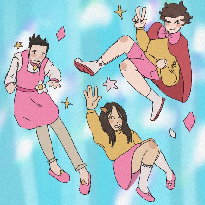 tried to draw them in puppycat outfits ✨ idk why foosh looks so panicked #tinakittenfanart #karljacobsfanart #foolishfanart #BeeandPuppycat