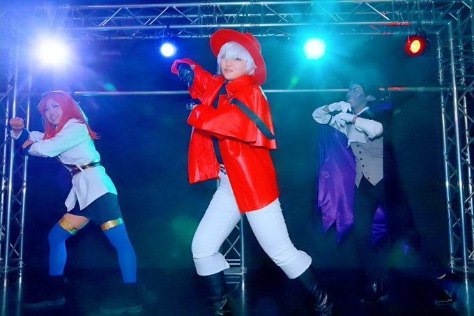 #レイヤーさんはコスプレの時のオフショットを晒して下さい 1枚目:猫好好をぶん殴る鬼灯様 2枚目:各々盛れる角度を探している 3枚目:前髪を気にするカリレジェ(アイドルの姿) 4枚目:素で楽しんでる長男
