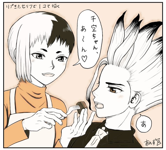 16 84 #リプ来たセリフで一コマ描く 「干空ちゃん、あーん♡」 2個目❤️出来る人妻とデレる旦那 千ゲです😊 22/02/07 19:00