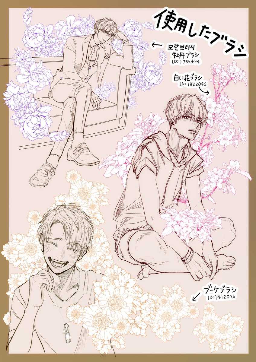 【 お絵描き練習 】 お花のブラシ(無料)を使いたくて描いた男たち💐 #イラスト #オススメブラシ #絵描きさんと繋がりたい #art #illustration #CLIPSTUDIO
