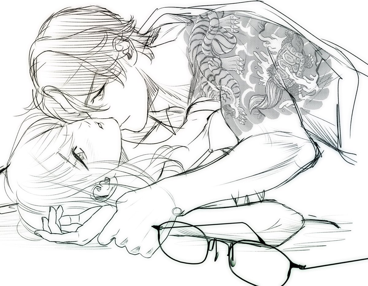 TL『#白衣の虎は極道で絶倫 』 💐ーーーーーー💐 キャラ紹介 💐ーーーーーー💐 🐉遠野 桔平 双竜組若頭。陽気なお兄さんだがそれだけではなさそう 🐕重田 修 暖の付き人。ムードメーカー 2人の共通点は「描くのがめっちゃ楽しい!」です #イラスト #コミックシーモア