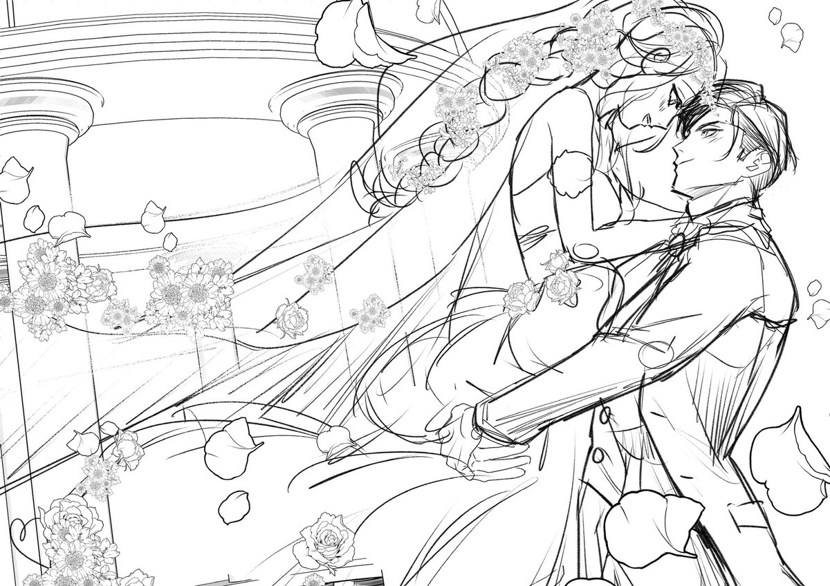 ハーレクインオリジナル10月号 【星の庭】イラスト ウェディングイラストめちゃくちゃ楽しかったです💐 次回の星の庭イラストも見て頂けると嬉しいです! ラフ ▶︎ 線画 ▶︎ トーン #ハーレクインオリジナル #イラスト #クリスタ