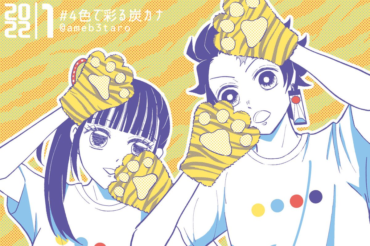 23 144 #炭カナ #4色で彩る炭カナ @4colortankana 15日まではお正月でいいよね?🐯 パレットお借りしました〜ポップで元気が出そうな配色💪😆✨ 22/01/15 20:30