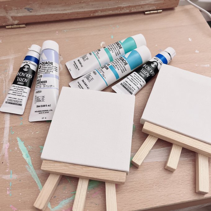 1 16 日中にやることぜーんぶ終わったので🤍 今から制作開始〜🌈✨ 今日は注文いただいたノートの限定特典🥳✨ミニキャンバスに空を描くよ😊💕わくわく 木の板にどんどん絵の具が着いていってる🫧これがまたいいんだなぁ🤤☂️ #制作 #イラスト 22/12/06 20:38