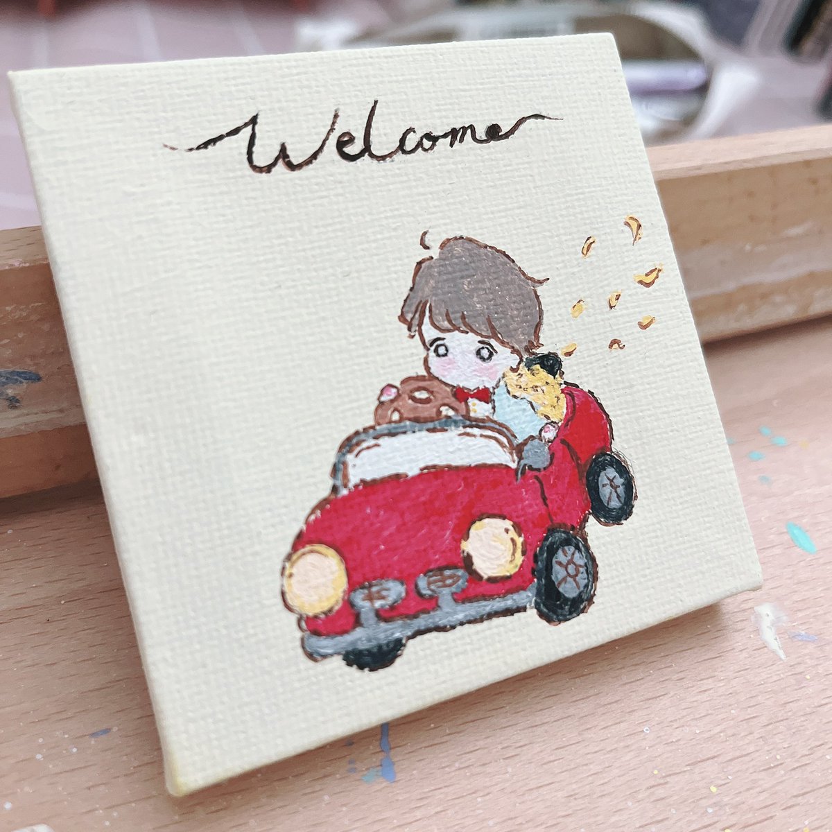 発送準備終わってから、 個展用に新しい作品を作ってた🌈 めちゃんこめちゃんこ可愛い子できた🥳🤍 細かい作業で目がしばしば🙄☂️ 寝ます!!!!わら #アクリル画 #イラスト