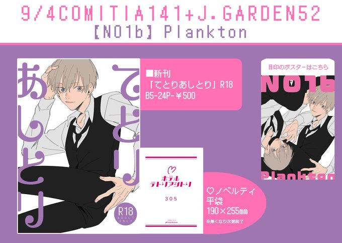 【9/4 J.GARDEN52 お品書き】 スペース:東1 N01b [ Plankton ] ▽pixiv pixiv.net/artworks/10091… ▽サンプル pixiv.net/artworks/10091… #創作BL #J庭52