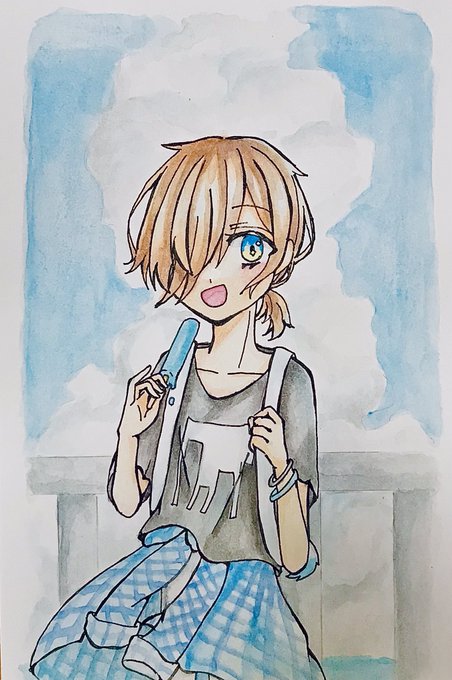 3 22 #しにがみあーと 久しぶりに水彩やりました〜 21/08/10 22:22