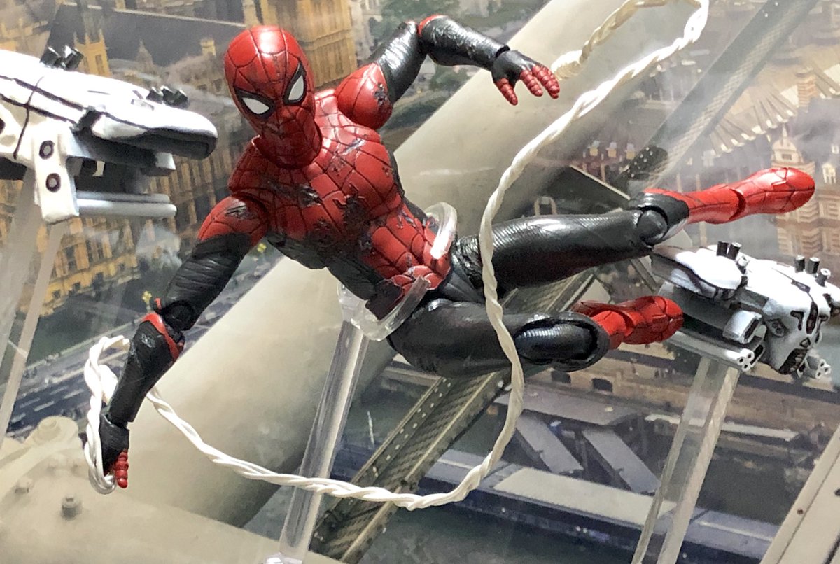 フィギュアーツFB版アイアンスパイダーのピンサー、付属のナノガントレットくらいなら難なくキャッチできる保持力あるのでこんなシーンも再現できちゃいます。 #オモ写