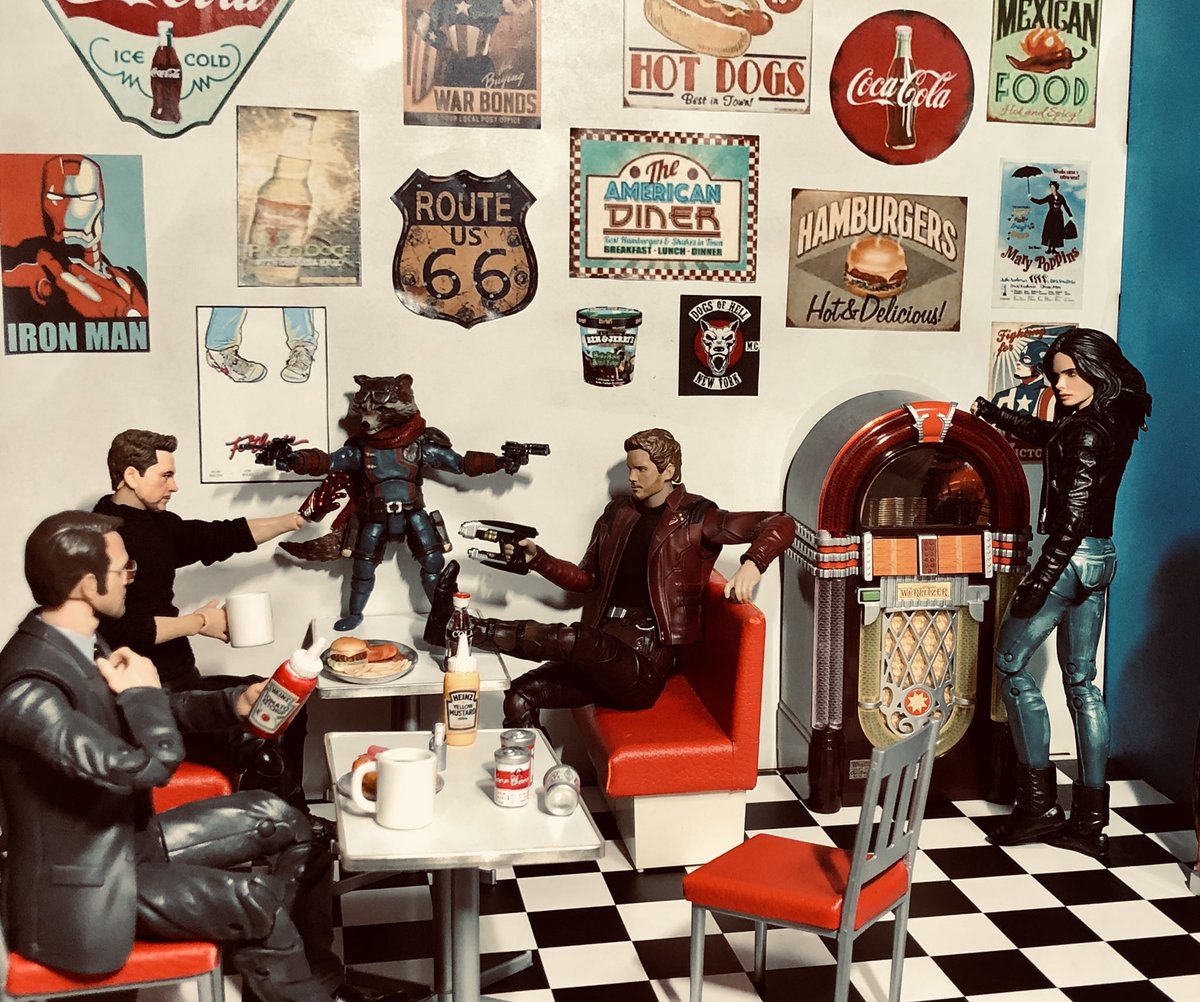6 88 ワンダヴィジョン風簡易ジオラマ作ったけど、フィギュアを2体置くと手狭すぎる致命的ミスを犯した #オモ写 #アメトイカスタム 21/07/18 10:57