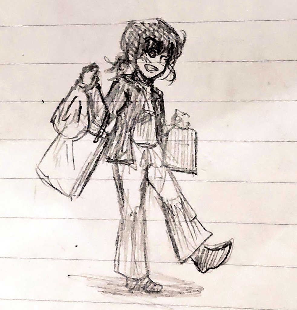 フリーマーケットは魔境ですね (たくさん買い物してしまいました) #イラスト