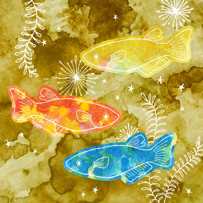 こちらも11月の新作 ワキンちゃんたちです* 昔、友人のお家で きんぎょが鯉化してました( ´ ∀ ` ) みんな20センチくらい… 水槽、狭そうだったけど みんな元気そうでした( ´ ∀ ` ) #bsidelabel #ビーサイドレーベル #イラスト #金魚