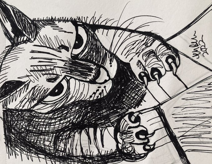 Inktober day 18 scrape #Inktober #scrape #inktober2022scrape #penandink #art #artist #cats #naughtycat @inktober @ameliabennetts
