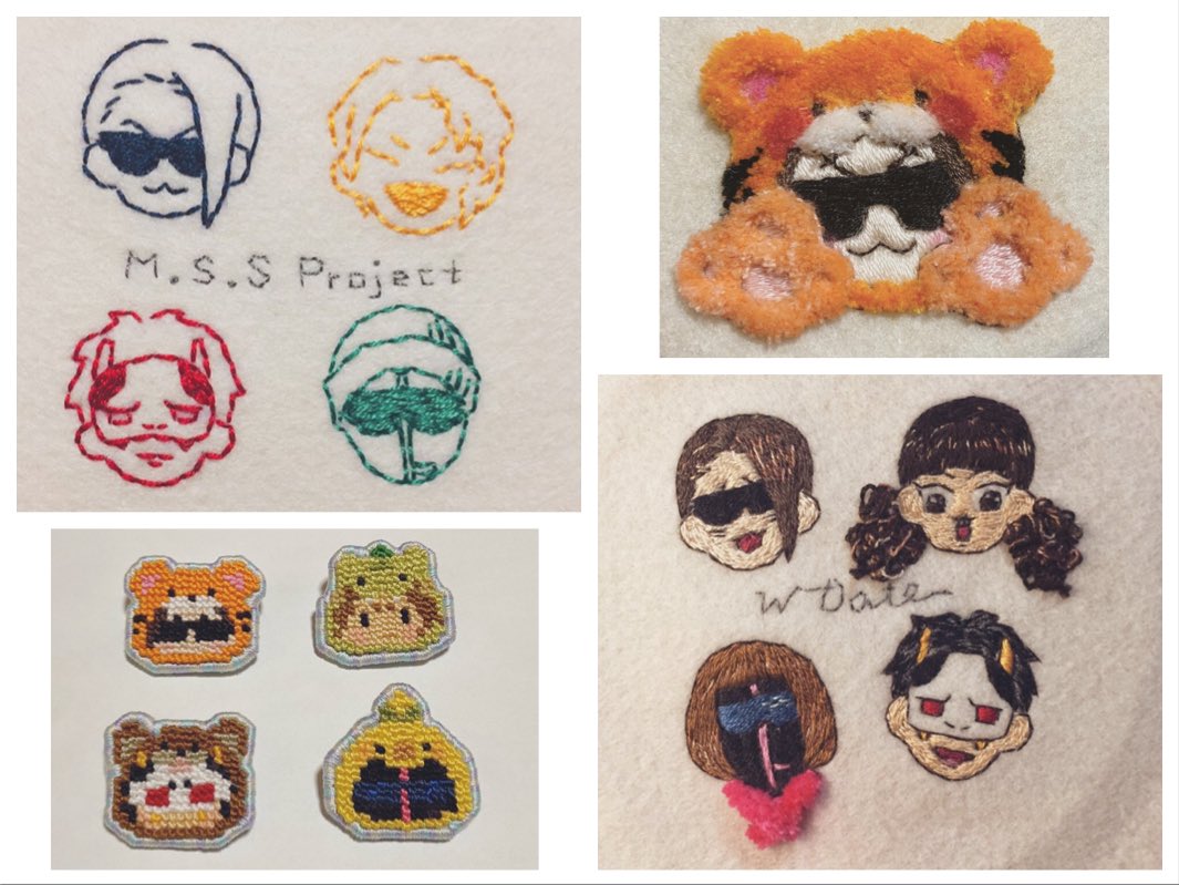 刺繍🪡 1番最初は道具ないまま普通の糸で作った思い出 再掲もかねて おおまかに古い順〜 こう見るとだんだん上手になっていってると思う #わたしのアレはMSSPから #MSSPアート