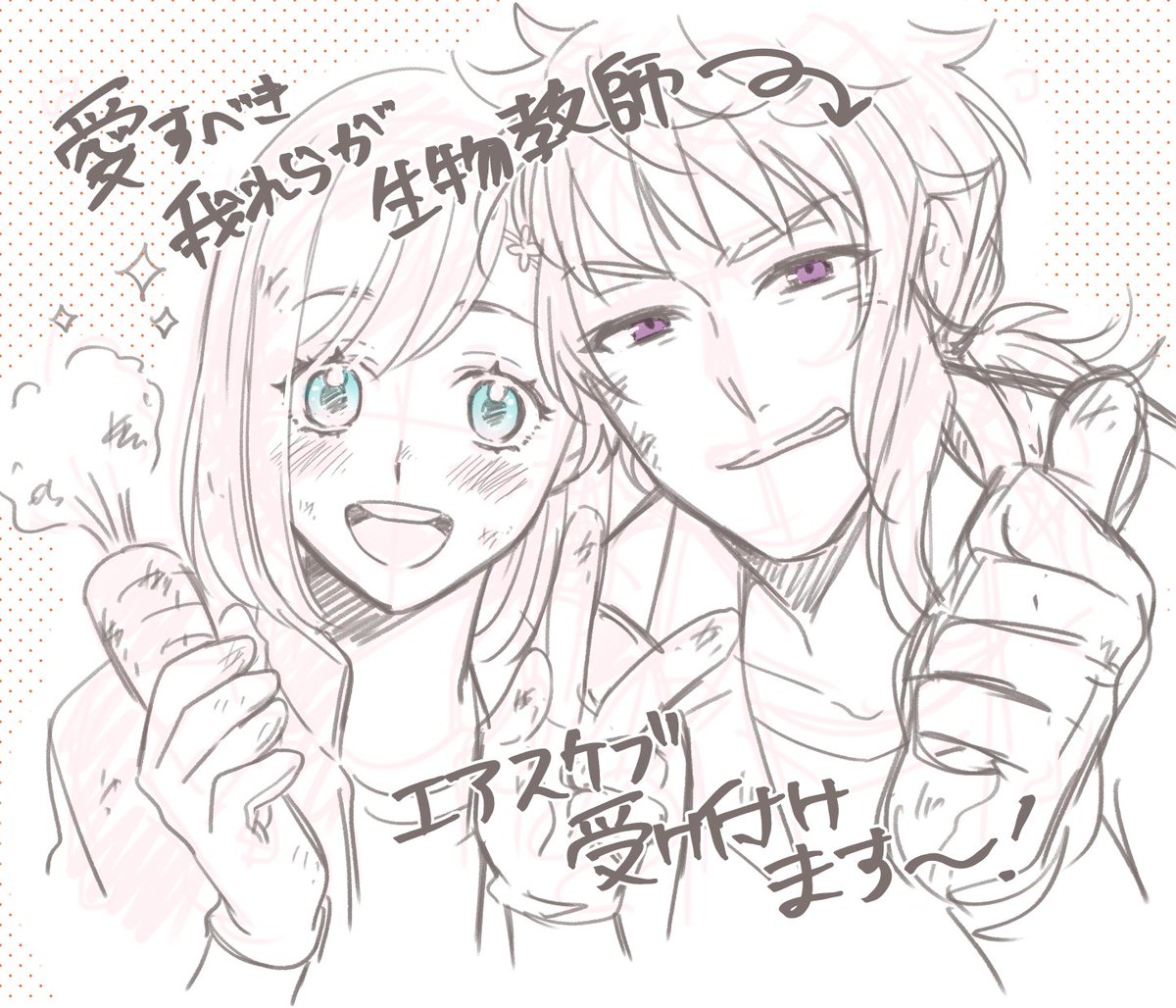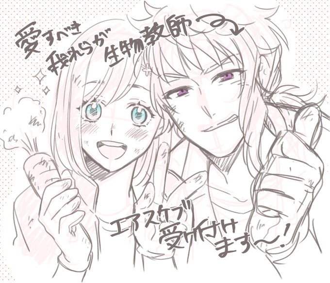 #愛すべき我らが生物教師 フォロー内外問わずエアスケブ受け付けてます! 御影先生メインに、+マリィか仲良しグループまで 画像のようなササっと落書き程度ですがよろしければ~😘 リクがたまったら受付中断→消化→再受付します。 軽くシチュや格好のリクエストも添えて頂けると助かります♡