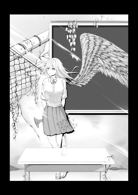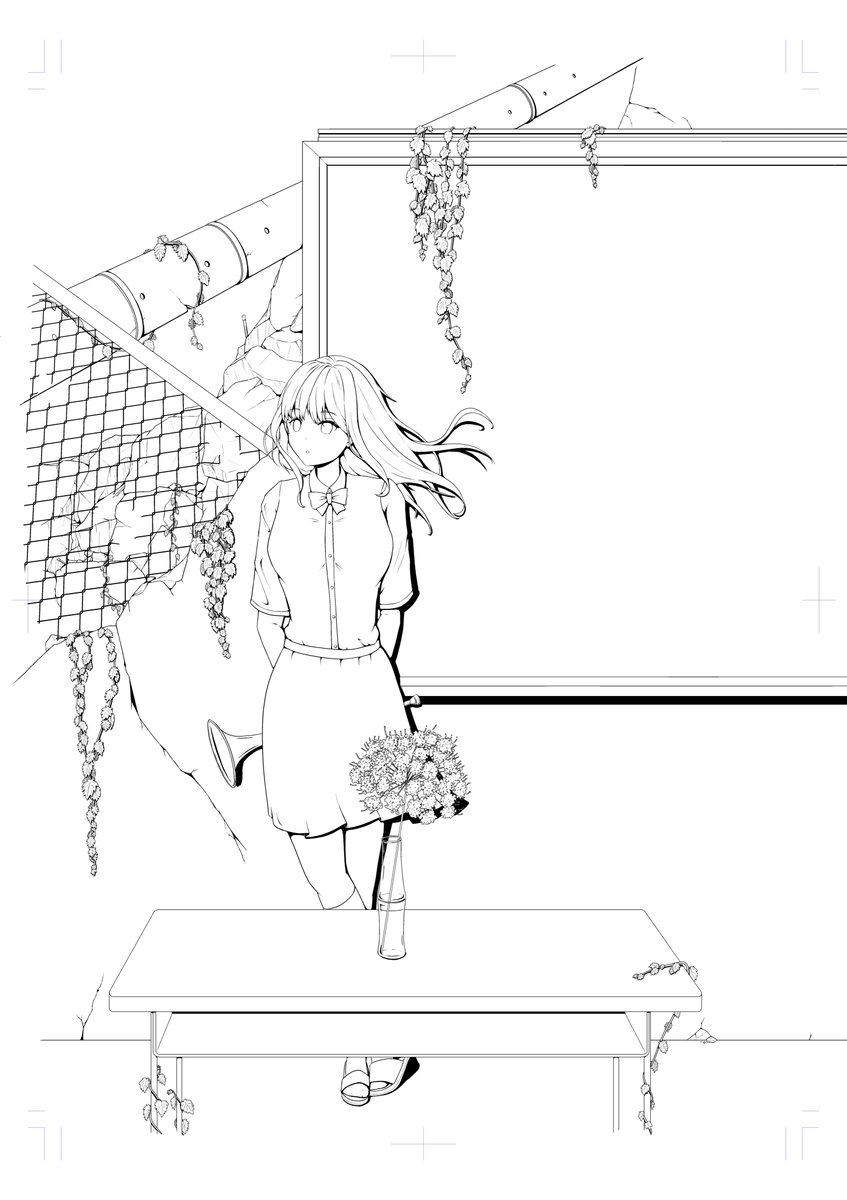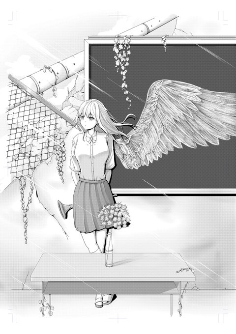 0 10 卒業制作進捗報告 モノクロ4 線画と黒塗りまで終わりました。 頑張れば来週の授業で完成近くまで持っていけそう #イラスト #イラスト進捗 #卒業制作 22/06/10 17:42