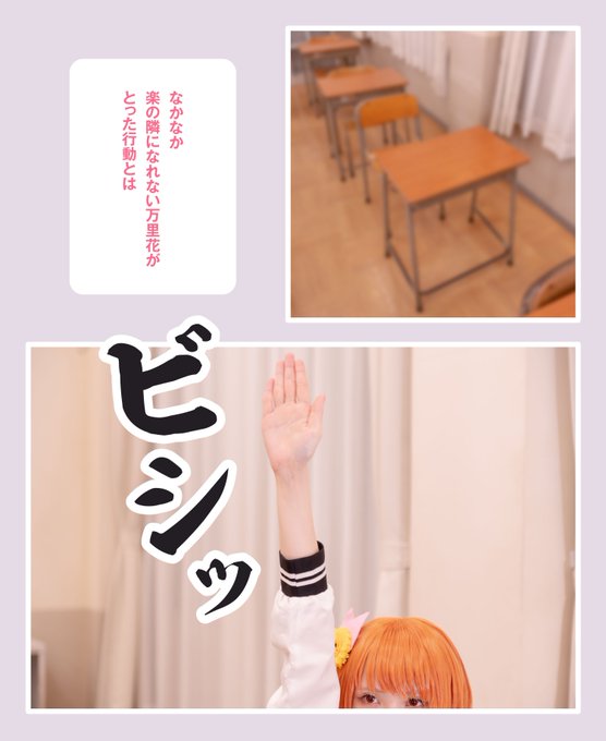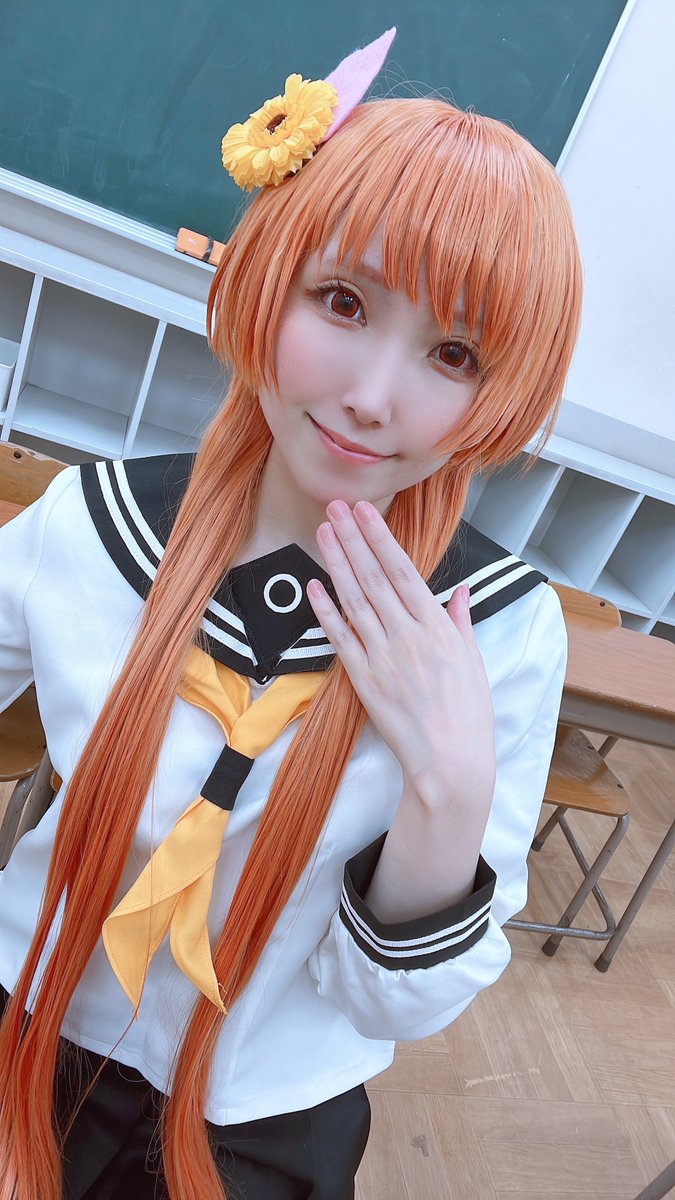 ニセコイ / cosplay 席替えでどうしても楽と隣になりたい万里花 の再現作ってみました。 笑ってもらえたら嬉しいです🌼🧡 📷:大佐