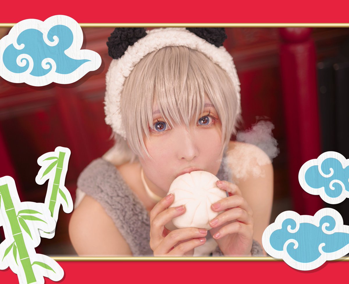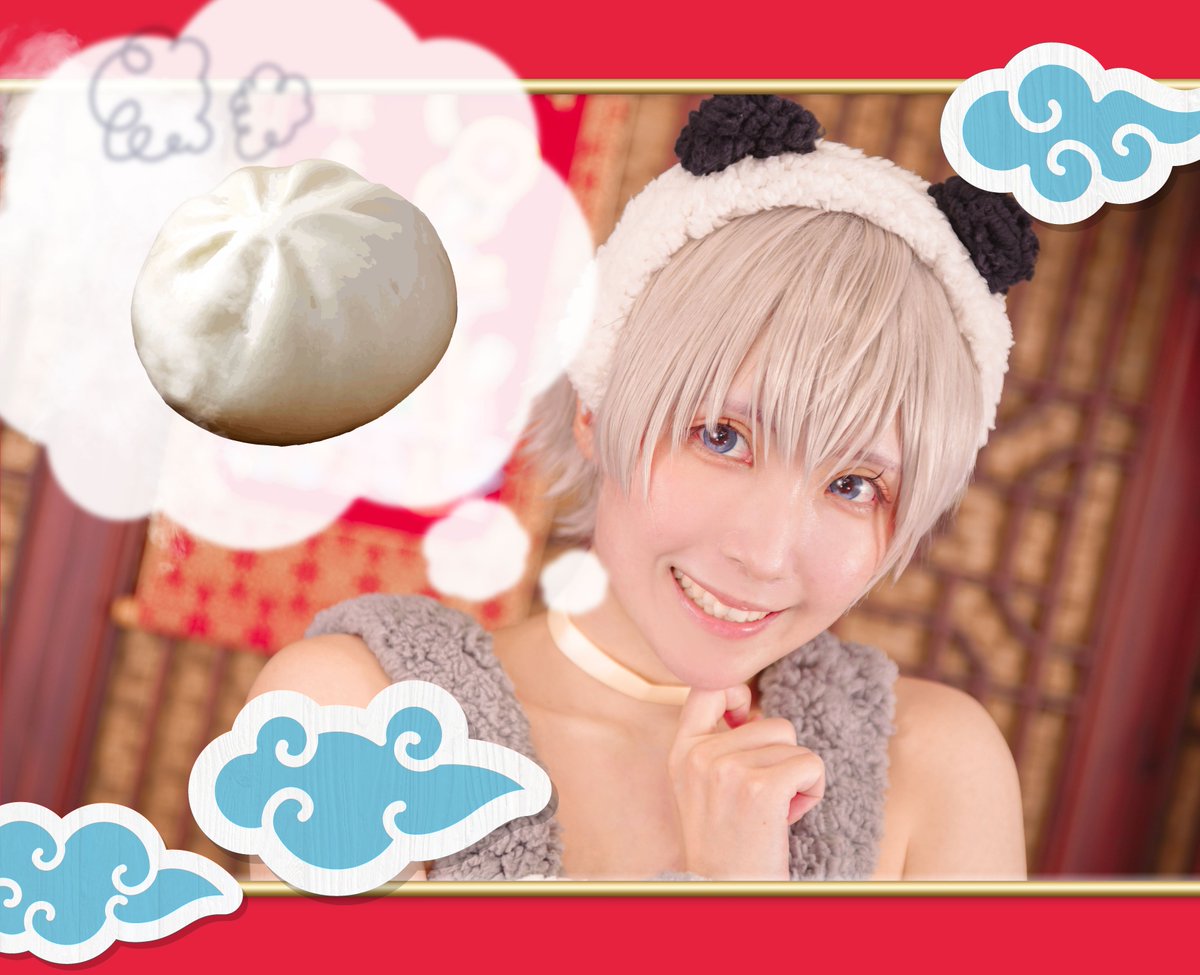 俺ガイル / cosplay 戸塚彩加(一番くじ衣装) 🐼🥟☁️🎋 戸塚が肉まんをもぐもぐする 📷:大佐