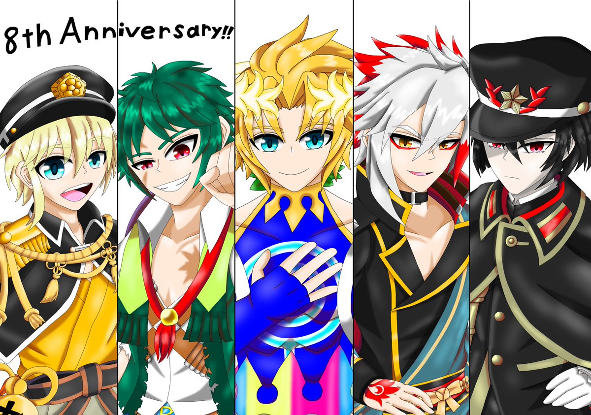 モンスト8周年おめでとうございます!!😆✨🎉🎂 好きな属性キャラでお祝いしますがこれからもたくさん楽しく遊んでいきます!!!!😄✨💕 #モンストイラスト #モンスト8周年 #モンスト