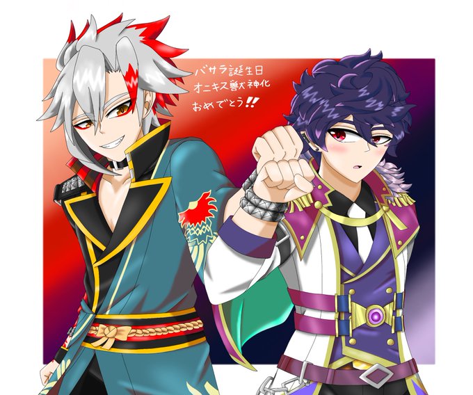 過ぎてしまったが改めてバサラの誕生日とオニキスの獣神化おめでとう!!😆✨🎉 #モンストイラスト