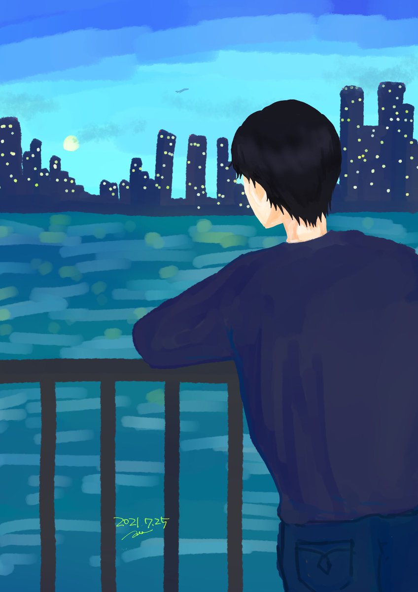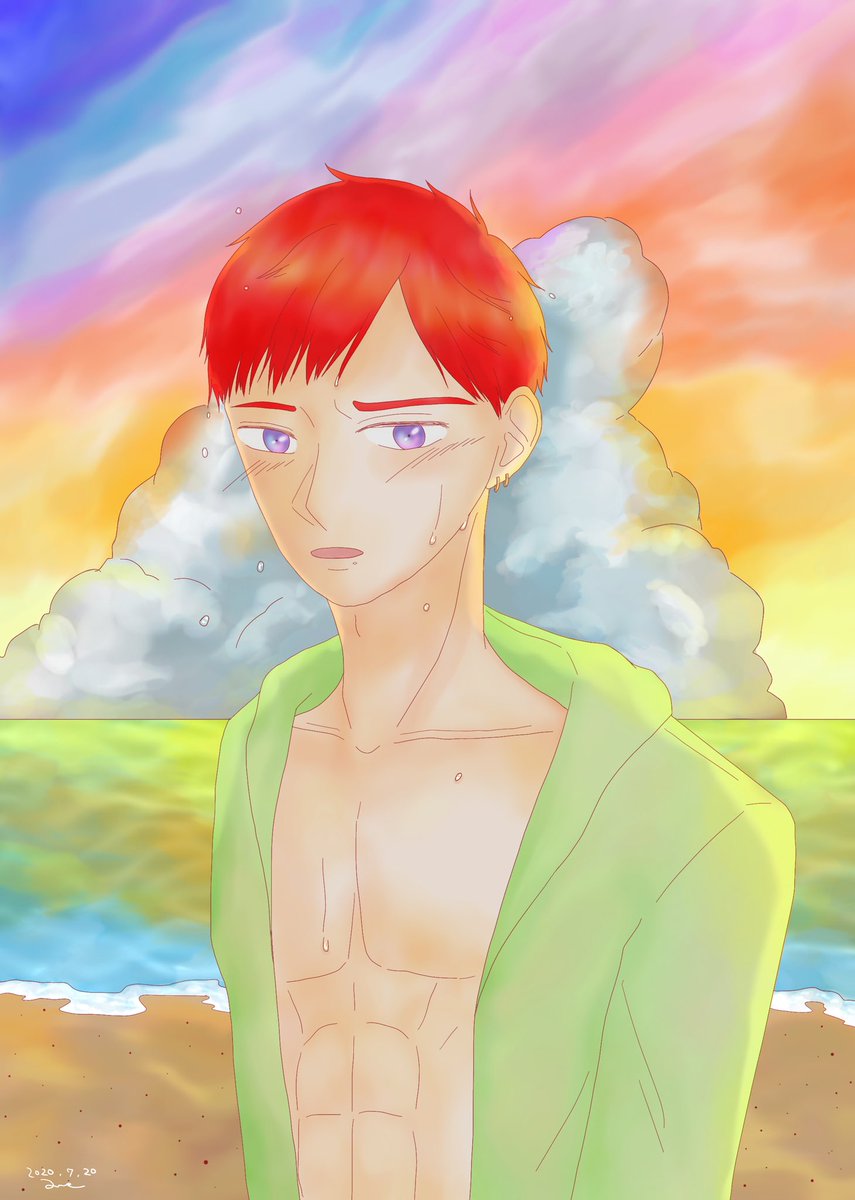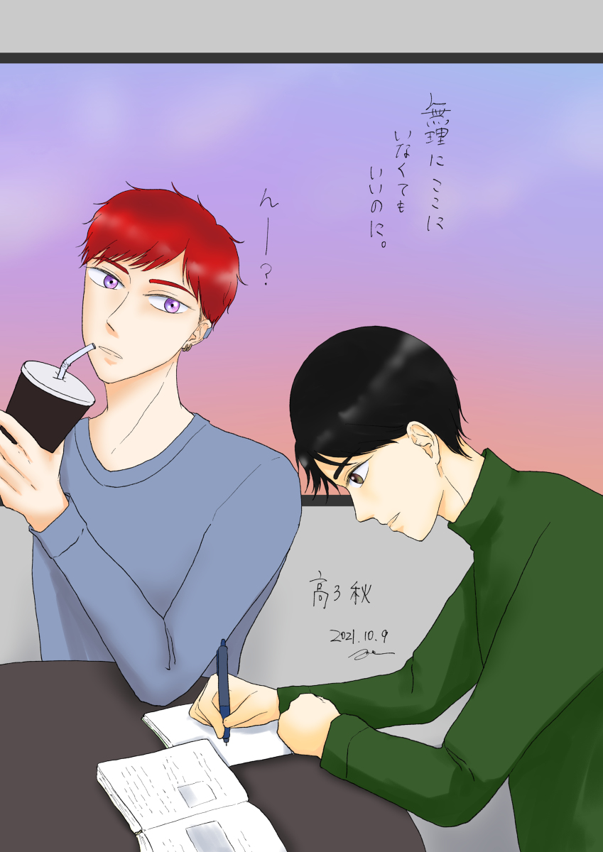 #最高傑作の絵っていうかこの絵が個人的にめちゃくちゃ好きなのであげる ①リメイクしてグッズにしたいけど、ずっとこれを超えられない… ②いまこの空海のカラー出せない ③史上最高に時間かけた。夫に背景写真かと思われた ④横顔が可愛い。ポーズや背景も含めてお気に入りすぎて名刺にした