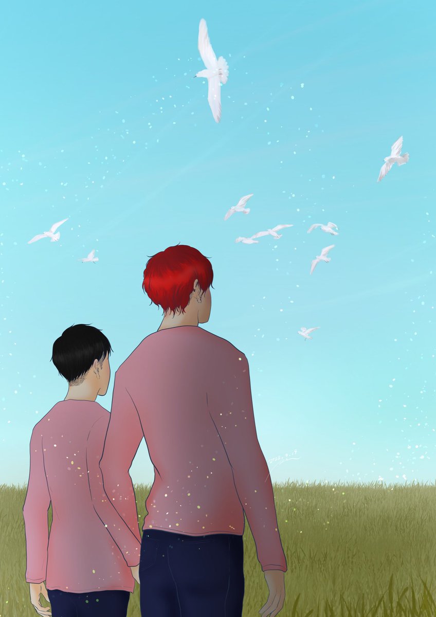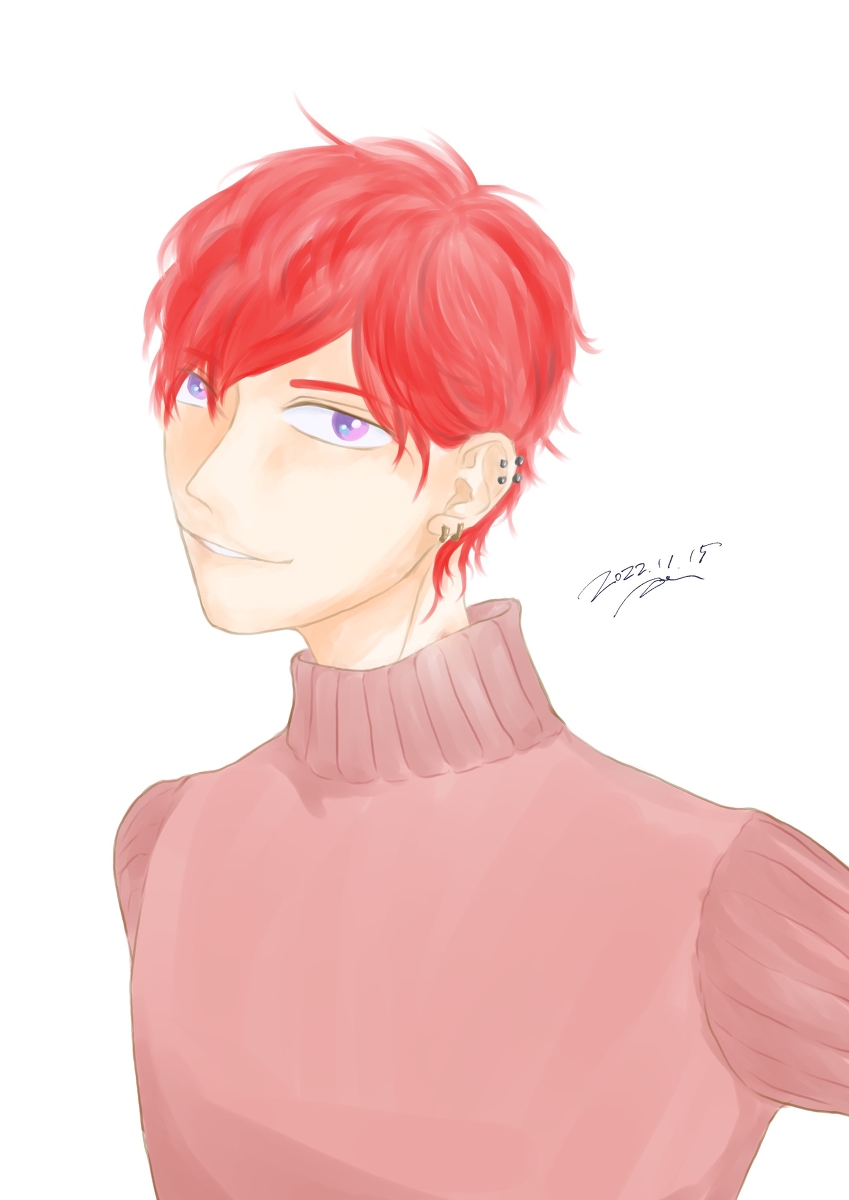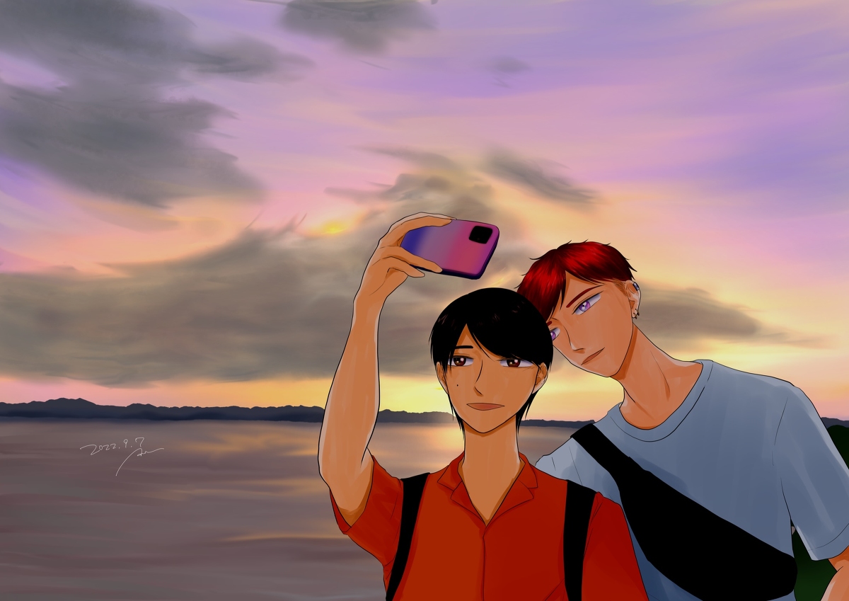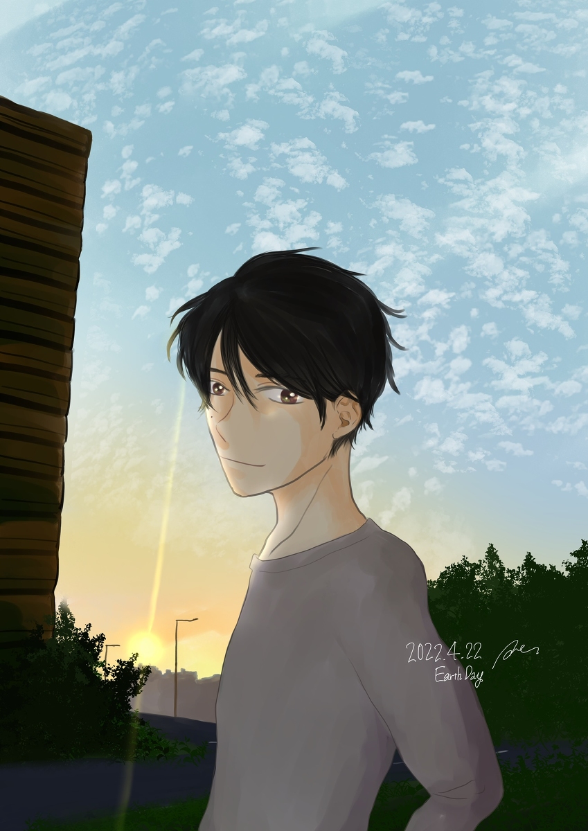 #最高傑作の絵っていうかこの絵が個人的にめちゃくちゃ好きなのであげる ①リメイクしてグッズにしたいけど、ずっとこれを超えられない… ②いまこの空海のカラー出せない ③史上最高に時間かけた。夫に背景写真かと思われた ④横顔が可愛い。ポーズや背景も含めてお気に入りすぎて名刺にした