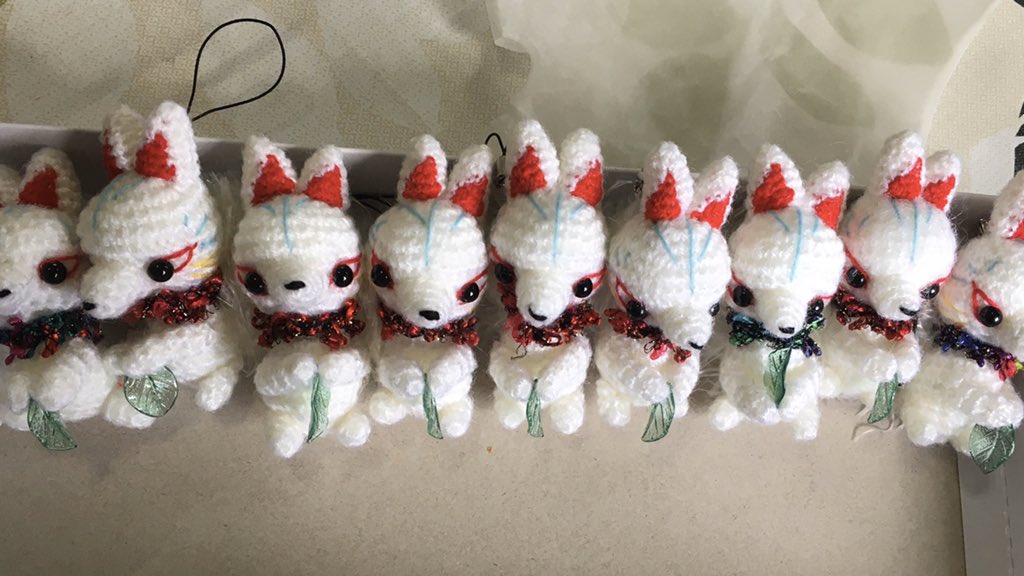 怖いマフラー🧣作ってみました。 だいぶん前に百鬼夜行で中国の素敵なお姉さんにお迎え頂きました。 私的には可愛いと思うのですが、家族には不評です。😇 中旬に一応サイトに載せます。