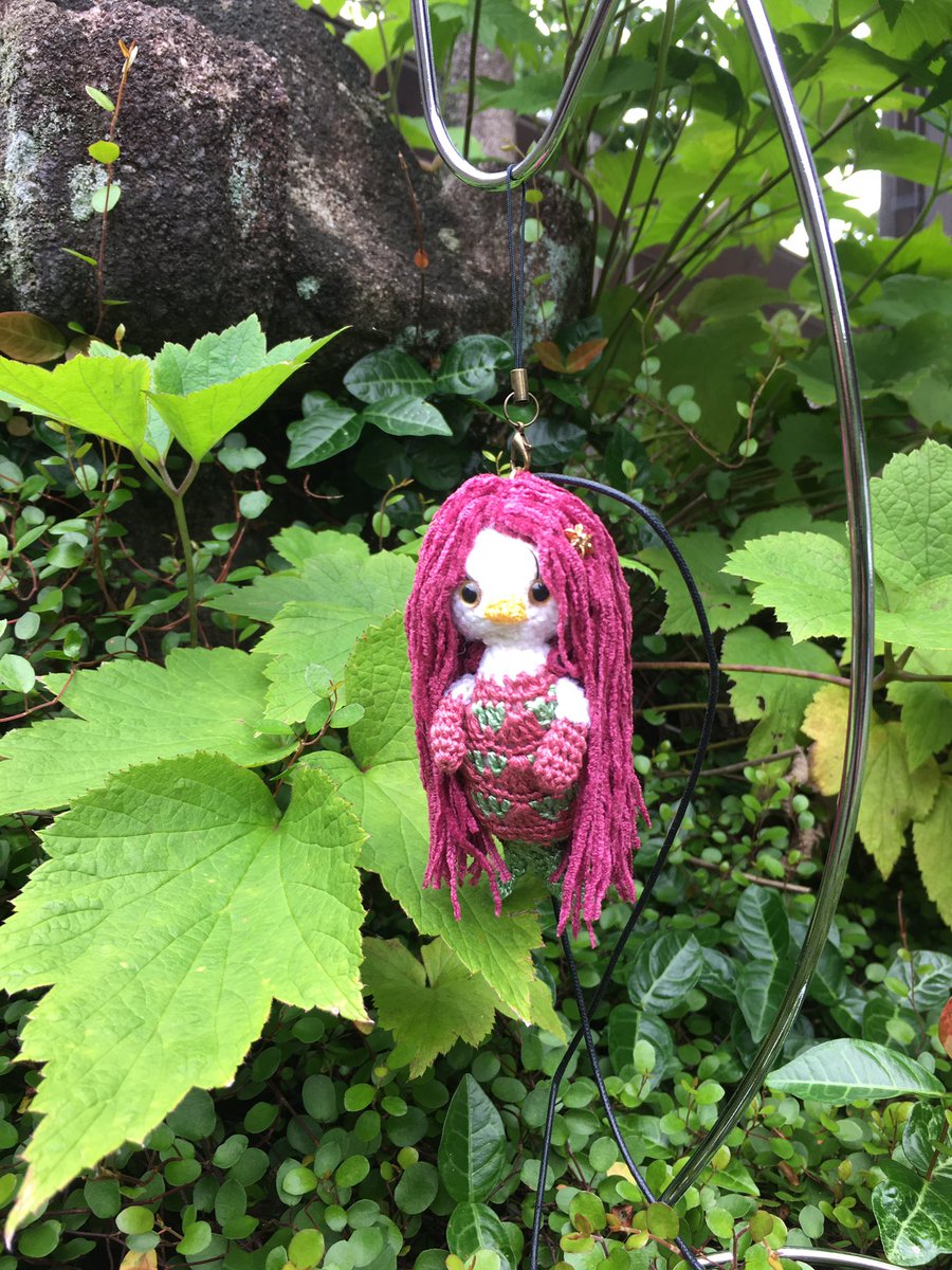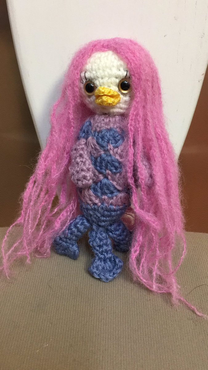 アマビエ様改良版です。身体はレース糸に。目にはつけまつげ。👁 #みんなのアマビエ