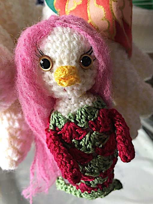 21 78 アマビエ様改良版です。身体はレース糸に。目にはつけまつげ。👁 #みんなのアマビエ 20/03/26 20:27