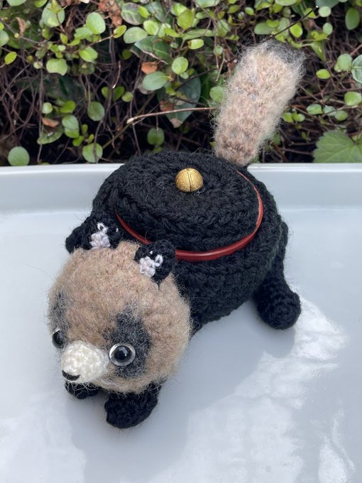 24 80 茶釜🦝〜 付属容器をいれればお湯?も入れられます。取り外し可能です。 カップホルダー🥤にも😂 モノノケ市にはこの五体持参致します。🙏 #モノノケ市 #貍 22/04/07 16:54