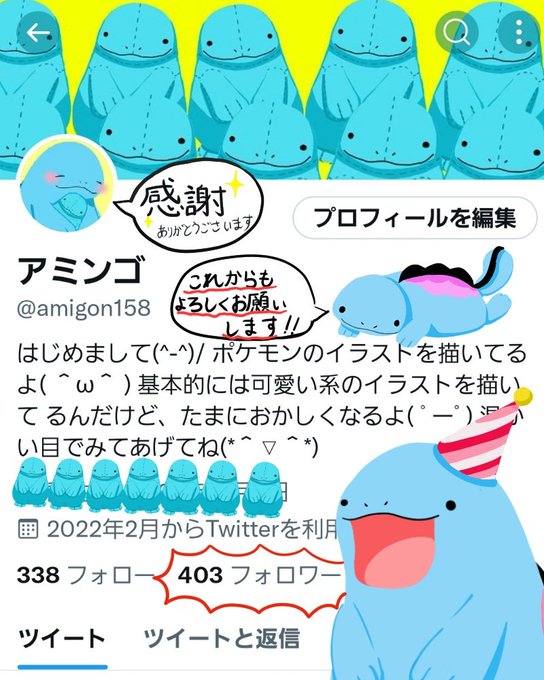 2 61 おかげ様でフォロワー様400人突破いたしました。 皆様の♥️・RT・+👥を励みに作品を楽しく描けています。本当にありがとうございます。 これからも引き続き頑張っていきますので、応援よろしくお願いします🙇⤵️ #ヌオー #ヌオーイラスト 22/08/17 22:54