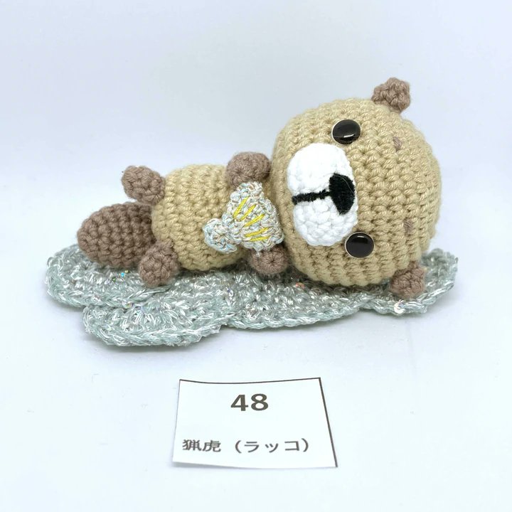 6号です! #あみコレ2021 テーマ作品コンテスト「とら」のエントリー作品をご紹介します! 作品番号48「猟虎(ラッコ)」 上目遣いがとてもキュートな猟虎ですね!手に持っている貝は美味しかったかな?6号も一緒に食べたいな! 投票はこちらから↓ store.amigurumi.jp/collections/th… #あみぐるみ