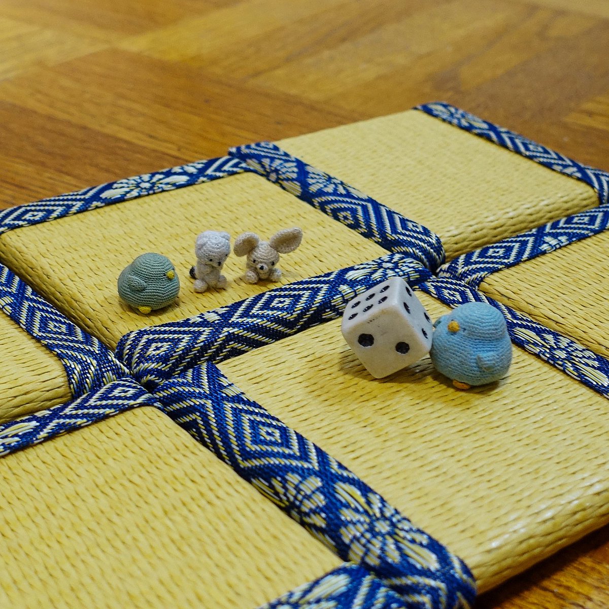 座布団の模様に隠れたカメを探してみよう!ズーム無しで見つけられたらすごい! #あみぐるみ