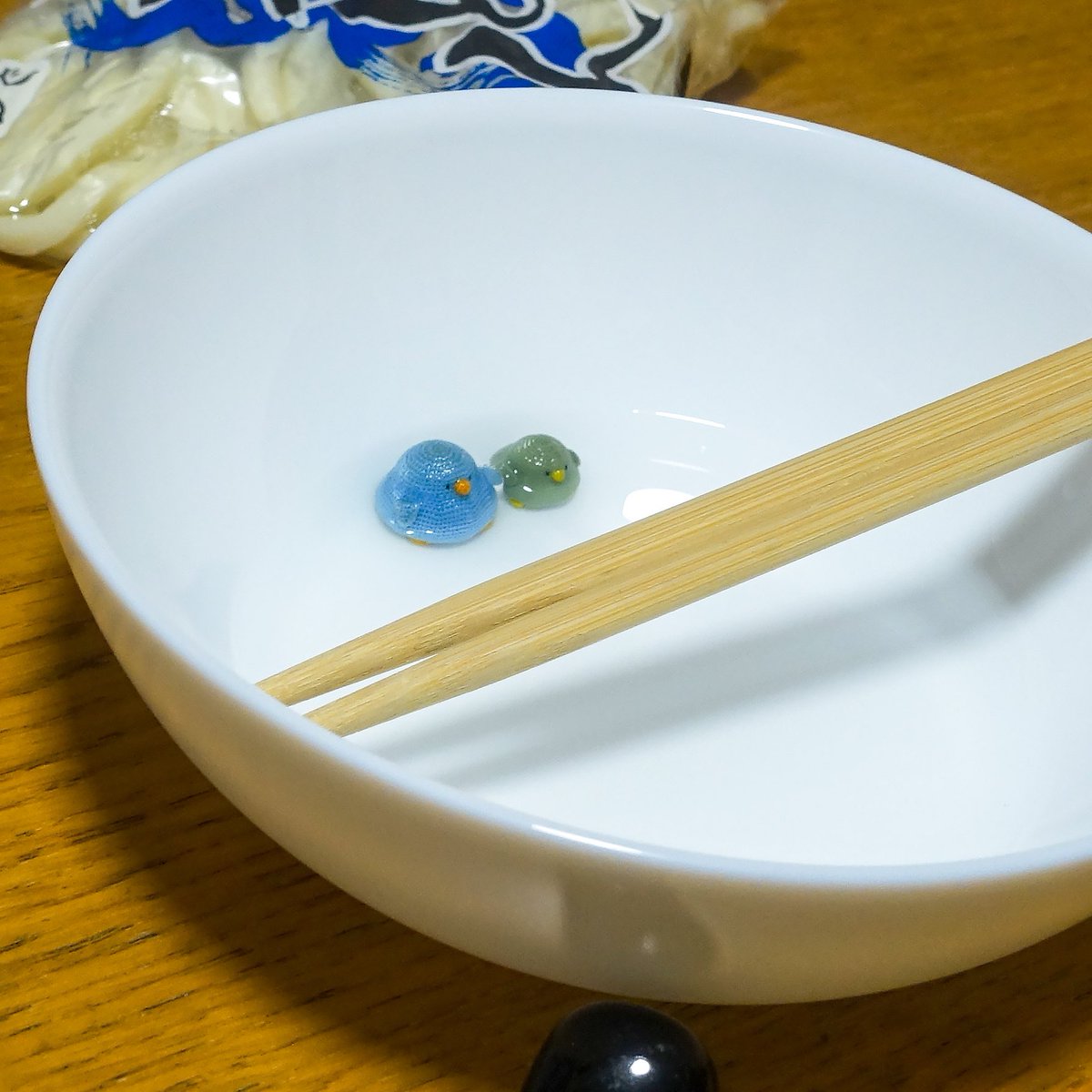 梅雨入りと聞いてめんつゆに入ろうと思ったけどさすがに厳しいので、つゆになる前の水に入った。 #あみぐるみ