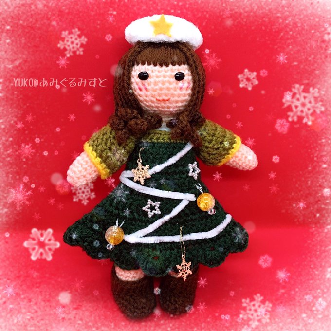 3 58 #じぶん を編みました。 さすがに中年女性をつくる勇気はなく若作りですが、季節のコスプレをしたくて。着せかえ仕様です。 今回は #クリスマスツリー🎄を着ました。 #あみぐるみ No.80 20/12/15 20:15