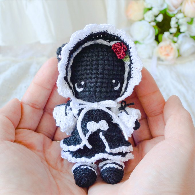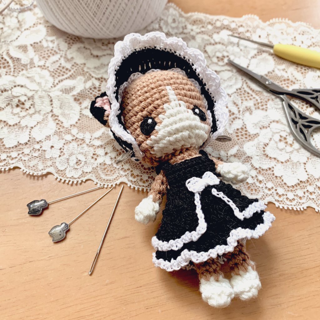 今日はここまで‼️見えにくいですが(私はなぜ黒糸から始めたのか)、おメメ以外全てあみぐる糸で編んだ猫ちゃんです🐈⬛🐾エミリーちゃんのドレスをお借りしたけどぴったり👍✨ふかふかモコモコ猫ちゃんはシリーズ化していきますよ〜名前は考え中🤣 #あみぐるみが編みたくなる糸 #お人形 #ハンドメイド