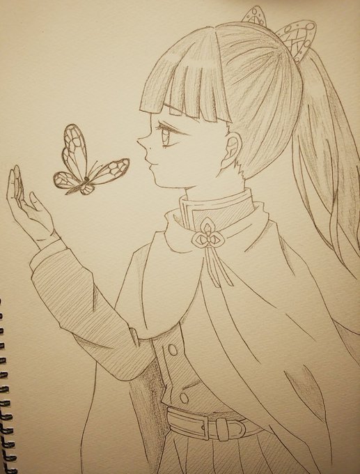 鉛筆でちょっとだけ塗ってみました! #鬼滅の刃 #栗花落カナヲ #絵描きさんと繋がりたい