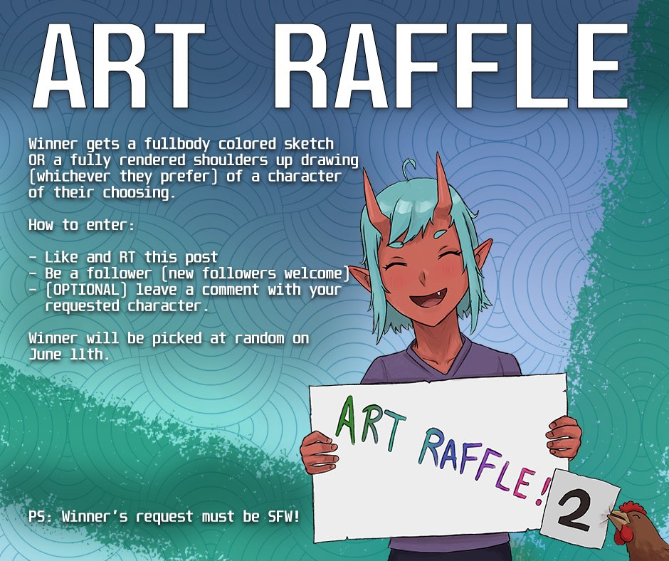 Alright, doing another one of these because they're fun! ⚠️Rules: - Like + RT + Follow (no QRTs) - (𝗢𝗣𝗧𝗜𝗢𝗡𝗔𝗟) leave a comment with your character - Please keep request SFW Raffle ends on June 11th and I will announce the winner that day. #artraffle #raffle