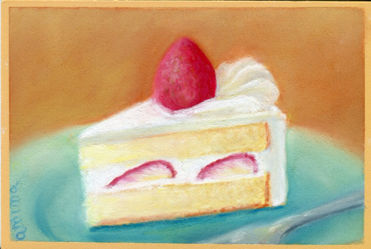 2 90 「いちごのショートケーキ」を描いてみました。 まわりの生クリームが厚くなってしまった。スポンジが難しいです。 Size: ハガキサイズ (148×100mm) #パステル画 #アナログ絵 #pastel #artwork #ショートケーキ #食べ物イラスト #絵描きさんと繋がりたい 22/12/11 08:18