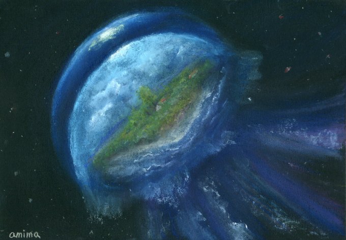6 86 #パステル画 で巨大クラゲを描きました。(サムホールサイズ(227×158mm)) 同様な絵がありそうですが、一応オリジナルの空想画です。 #ファンタジー #イラスト #pastel 23/03/20 11:11