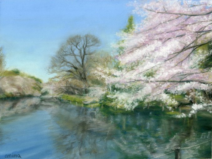 16 322 #パステル画 「公園の桜」 描き終えました。時間かかっちゃった。 #桜の作品でTLにも桜を咲かせましょう #pastel #風景画 #landscapepainting 23/03/26 10:31