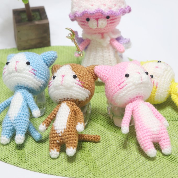 着せ替えにゃんこのぷりんちゃん4体、 明日の6月1日の午後8時頃(たぶん…)カートを開きます。 #minne :minne.com/@amimakuri #creema:creema.jp/c/amimakuri/it… (現在は「展示」) さあ、お迎えがあるかなあ…(,,•﹏•,,)ドキドキ 🏷️ #あみぐるみ #ハンドメイド #かぎ針編み