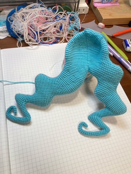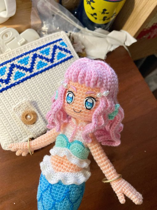 ローラ完成しました! 海をイメージした土台付き🌊 #あみぐるみ