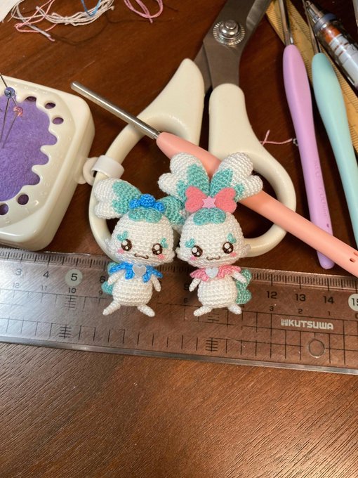 1375 8347 今まで編んだつぼみとえりか✨ 2人並べた時に身長差が出るようにするのが地味に難しいのです。 23/04/09 19:00