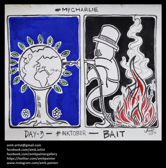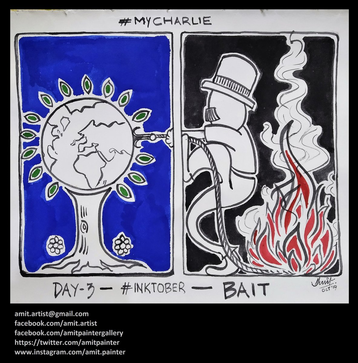 Inktober Day-3 : Bait (#MyCharlie) Think wisely - Dont bait the mother earth GO GREEN - Save the mother nature... amit.artist@gmail.com facebook.com/amit.artist facebook.com/amitpaintergal… twitter.com/amitpainter instagram.com/amit.painter #Inktober2019 #inktober #inkpainting #bait