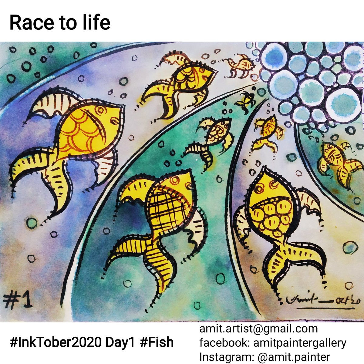 Day 1: Fish (Race to conceive) Inktober : daily 1 painting for October facebook.com/amitpaintergal… instagram.com/amit.painter twitter.com/amitpainter #inktober2020 #inktober #amitpainter #fish #illustrator #illustration #art #drawing #watercolor #watercolorpainting