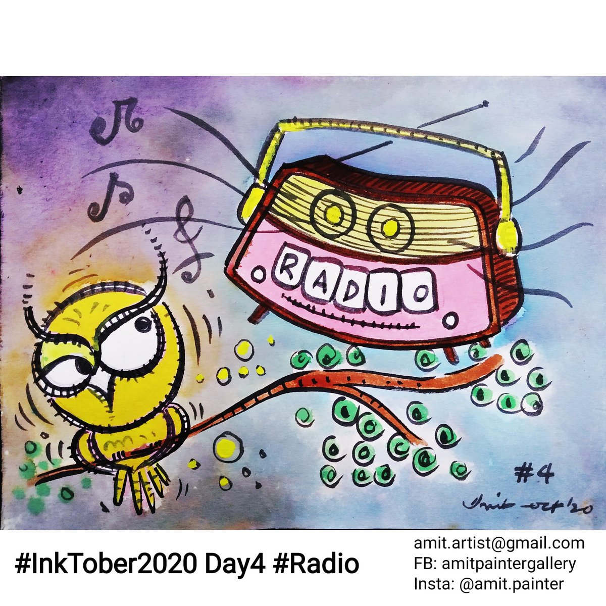 Day 4: Radio #inktober2020 Inktober : daily 1 painting for October facebook.com/amitpaintergal… instagram.com/amit.painter twitter.com/amitpainter #inktober #amitpainter #radio #illustrator #illustration #art #wisprouter #drawing #watercolor #watercolorpainting