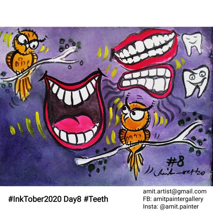 Day 8: Teeth #inktober2020 Inktober : daily 1 painting for October facebook.com/amitpaintergal… instagram.com/amit.painter twitter.com/amitpainter #inktober #amitpainte #teeth #illustrator #illustration #art #drawing #watercolor #watercolorpainting #painting #paintingoftheday